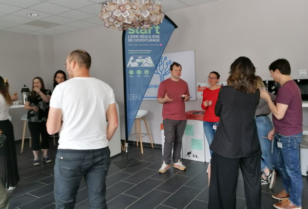 Chaque vendredi matin à 09h30, les occupants de la pépinière d’entreprises du Digital Square, gérée et animée par Citédia, se retrouvent autour d’un rendez-vous convivial : « Le Café du vendredi ». Dirigeants et salariés peuvent ainsi mieux se connaître et échanger durant ce moment informel. « Le but de ce rendez-vous est de créer du lien entre les occupants de la pépinière, lors d’un temps convivial propice aux rencontres », nous précise Erwan Bossard, chargé de gestion du site. Le vendredi 20 mai, Justine Granjon, Basile Guyot et Elodie Dausmann du réseau ont été conviés pour une action de sensibilisation auprès des occupants, sur la thématique du covoiturage.